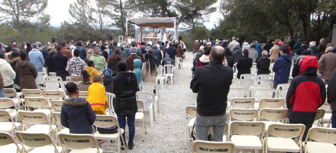La messe en plein air est présidée par Mgr Dominique REY, évêque de Fréjus-Toulon