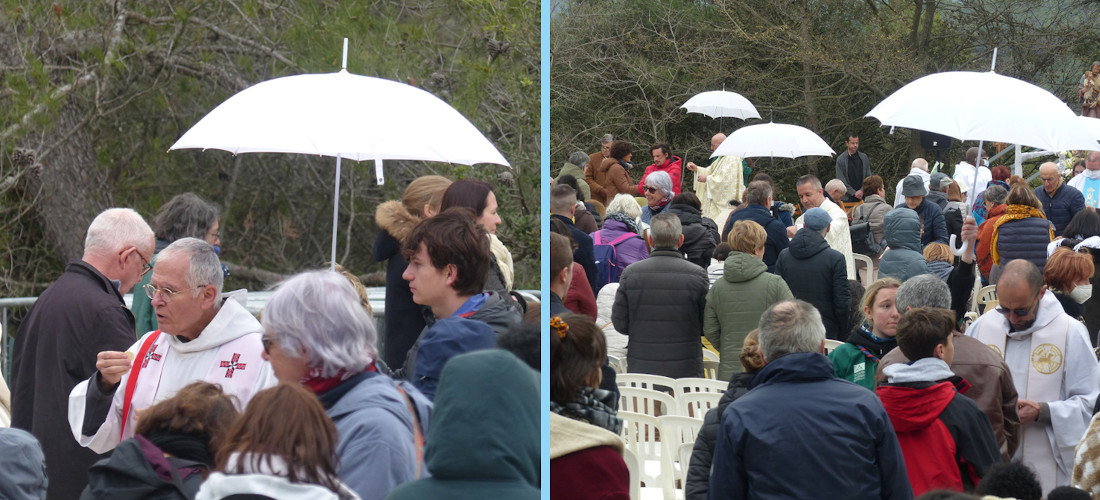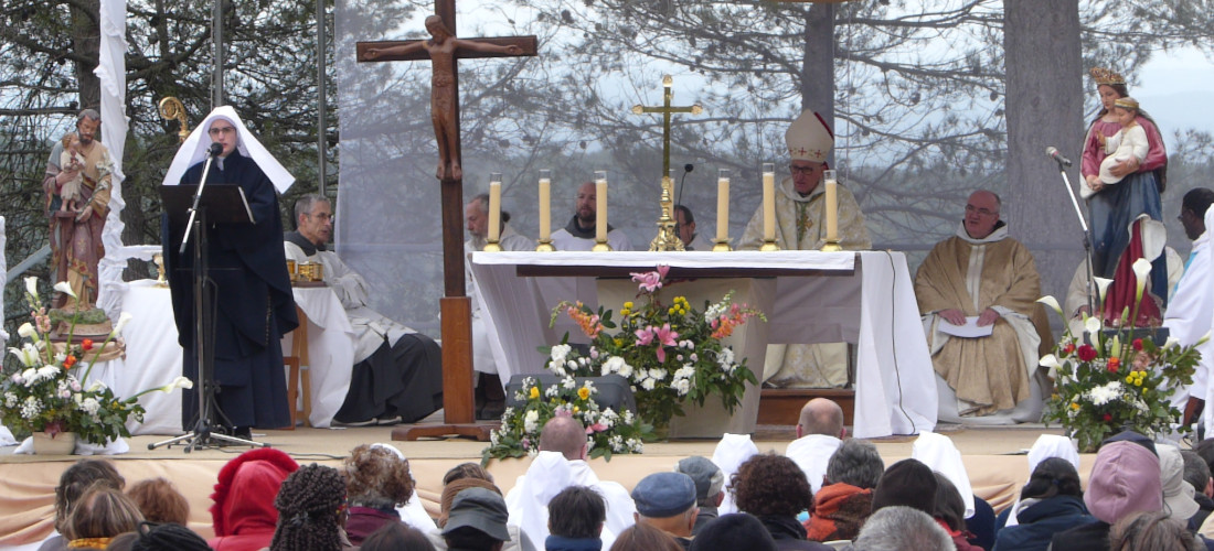 La messe en plein air était ptréside par Mgr Dominique REY, évêque de FRéjus-Toulon et chantée par les Soeurs de Mater Dei, gardiennes du Sanctuaire du Bessillon depuis 2019.