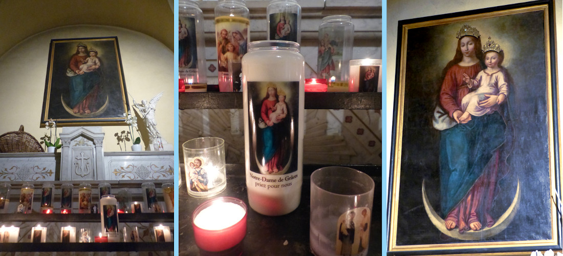 NOTRE-DAME DE GRACES _ Le pèlerin ne quitte pas le Sanctuaire sans avoir déposé aux pieds de Notre-Dame de Grâces un lumignon d'où montent toutes ses prières vers le Ciel.