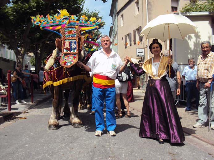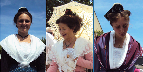 Pour la grande fête du village, les dames ont revêtu leur élégant costume d'arlésienne dont les couleurs chatoyantes resplendissent sous le soleil de Provence.