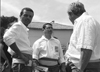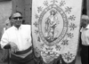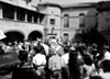 Place de l'église : devant la Maison des Chevaliers, le père VAN UYTVANGE, curé de la paroisse, bénit la Carreto Ramado de Sant-Jan. L'espace est très étroit, la foule doit rester à distance des chevaux, et St Jean Baptiste veille au grain... de mémoire de Barbentanais, il n'y a jamais eu d'incident.