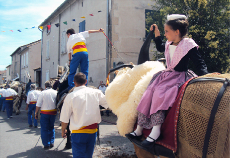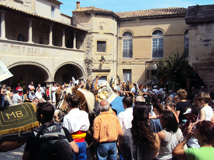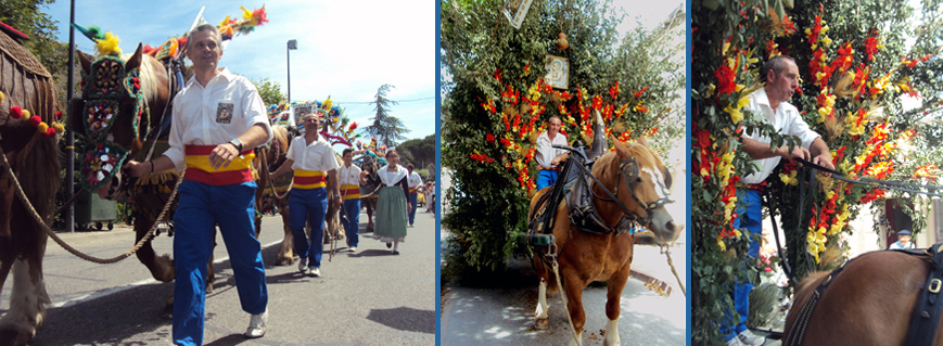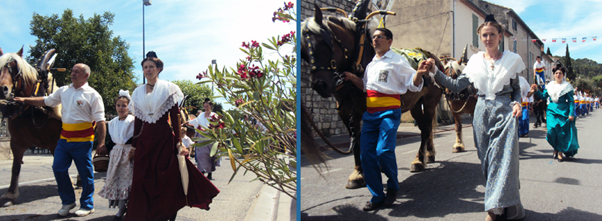 Défilé provençal dans le village et passage de la Carreto Ramado au grand trot.