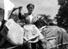 Lors du dernier passage au pas dans le village, les charretiers de l'attelage tiennent chacun une Arlésienne en main d'honneur.