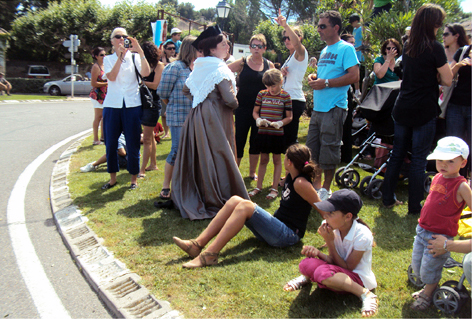 La foule s'est largement rassemblée autour et sur le rond-point de Saint-Joseph, là où passe plusieurs fois la Carreto Ramado, au pas d'abord, au grand trot ensuite.