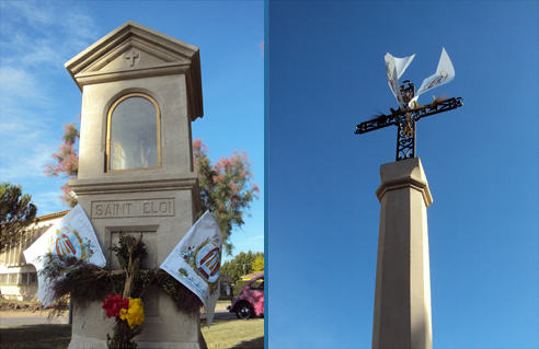 Eyragues est en fête, des fanions flottent dans tout le village et ici, sur le bel oratoire, édifié en 2012 par la confrérie de St Eloi.