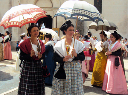 L'ombrelle est un accessoire indispensable du costume provençal traditionnel. Les Arlésiennes sont toujours très présentes dans les fêtes de de saint Eloi de la région des Alpilles.