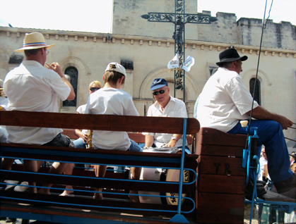 L'une des carrioles très appréciée dans le défilé est naturellement celle de la fanfare, dont les notes appuyées ne laissent personne indifférent : c'est la fête !