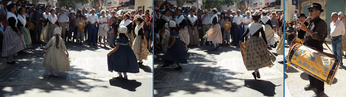 Le groupe arlésien l'Etoile de l'Avenir fait une belle démonstration de danses provençales tradiitonnelles sous l'oeil intéressé des nombreux spectateurs.