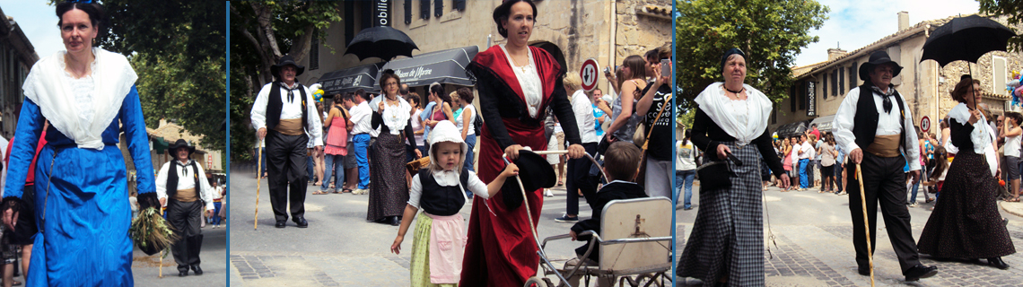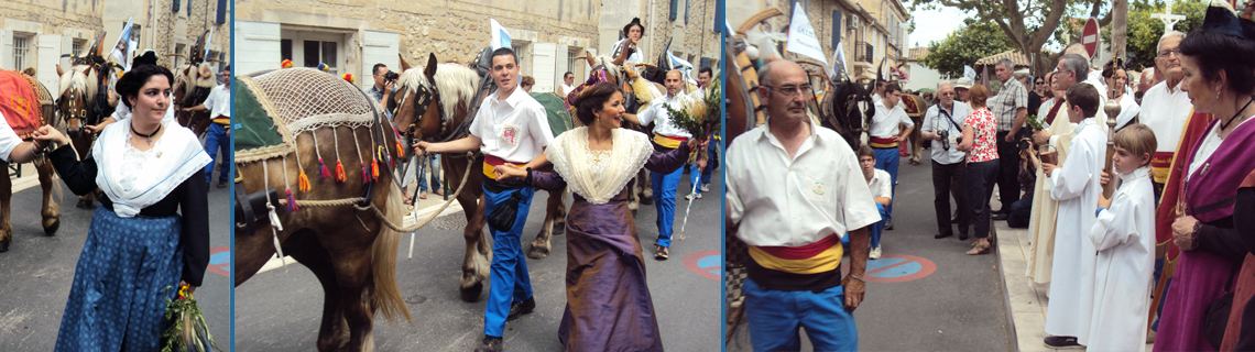 Le cortège fait plusieurs fois le tour du village ; lors du dernier passage, les charretiers tiennent une Arlésienne en main d'honneur (ci-dessus) et sont très applaudis par la foule.
