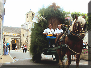 NOVES - 03 juin 2012 / Festo de Sant Aloi : la Carreto ramado de Sant-Aloi s'arrête devant l'église pour la traditionnelle bénédiction.