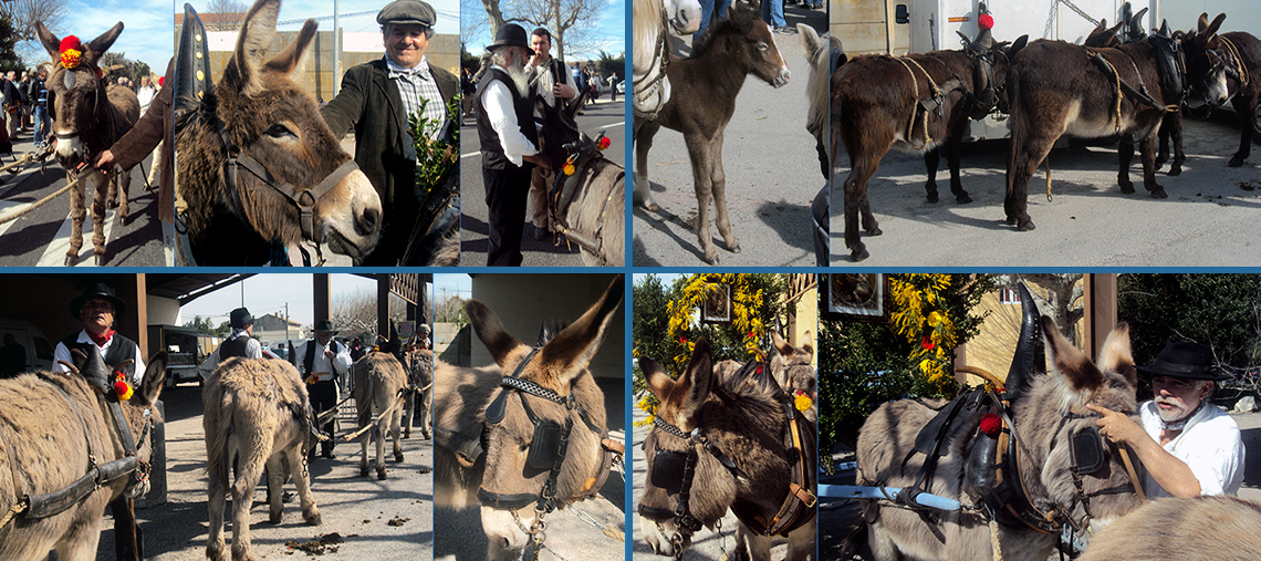 Les Gardians de Camargue sont les hôtes indéfectibles de toutes les fêtes traditionnelles de la région : en fait, les pâturages où paissent les Camargue à robe grise (Equus caballus) jouxtent les cossouls de la steppe aride de la Crau où vivent brebis et bergers - et donc les ânes (Equus asinus).