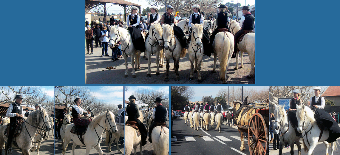 Dans le défilé : bergers de la Crau en costume traditionnel authentique (même s'il est parfois refait à l'identique) et jeunes provençales costumées. Toutes les générations sont représentées.