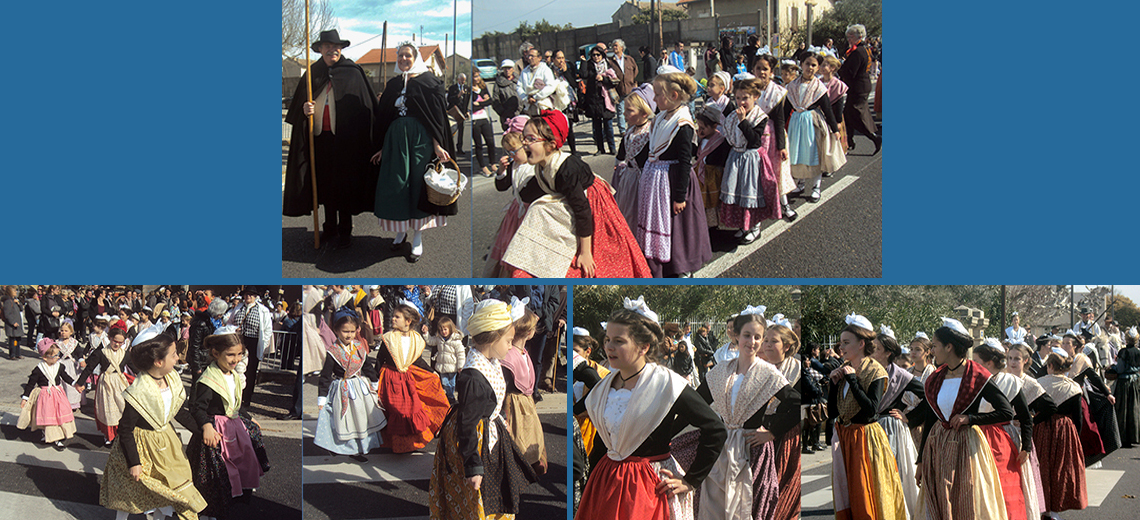 Les jeunes provençales costumées dans le défilé, une jeunesse affirmée qui augure bien de l'avenir de ces fêtes traditionnelles. Les enfants jusqu'à huit ans environ, portent le costume "de bonnet" : une jupe courte (au-dessus de la cheville) à motifs colorés, un jupon court, une chemise en coton blanc, un caraco noir à lacet (petit gilet sans manche), un bonnet (béguin) de coton sur la tête. Les enfants plus âgés portent le costume dit "en cravatte".