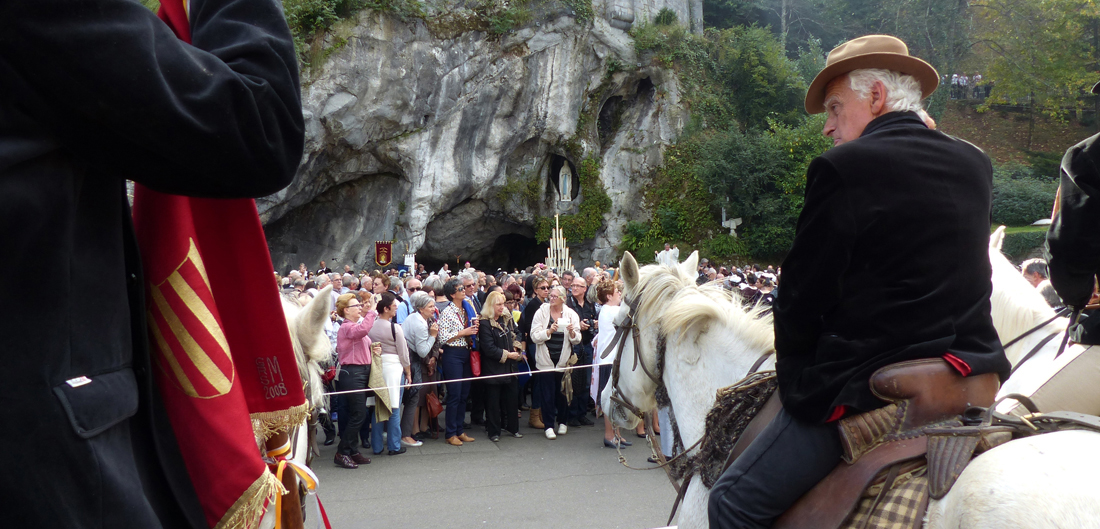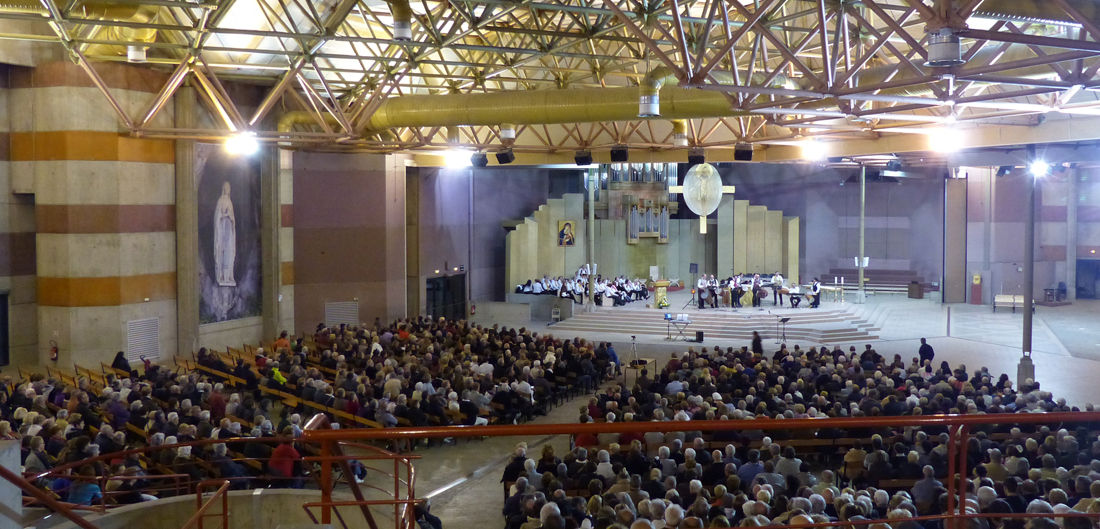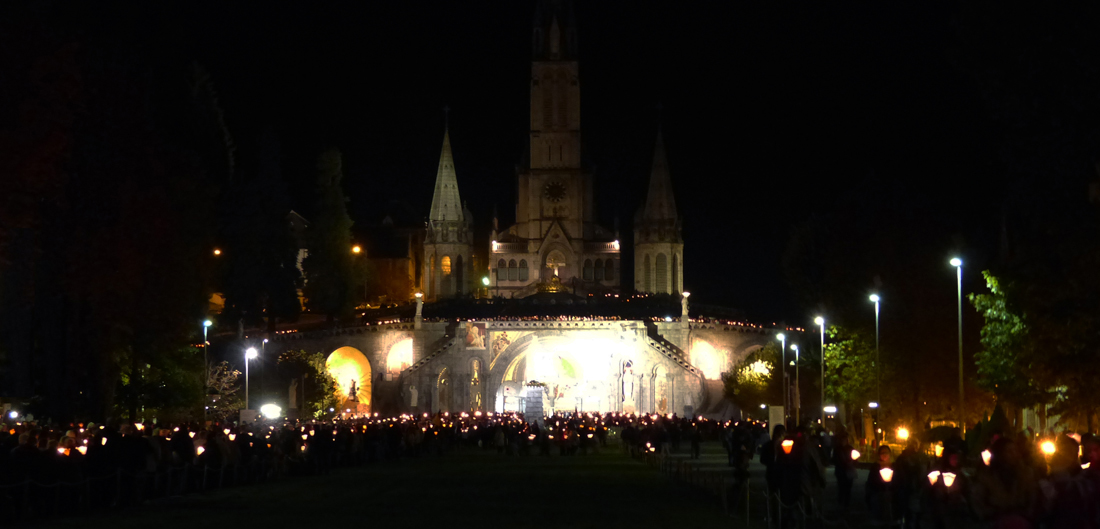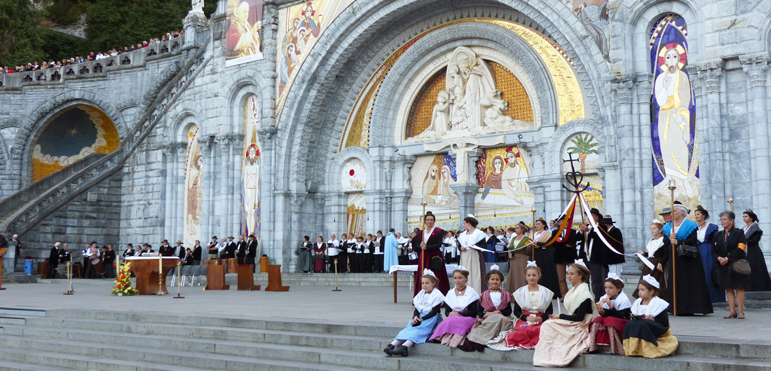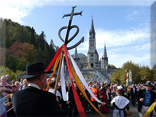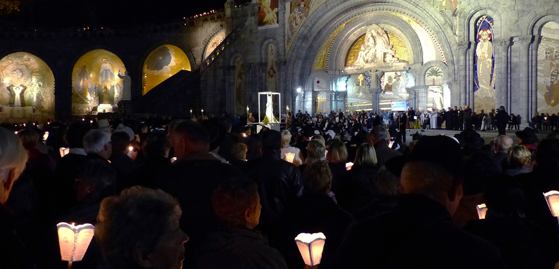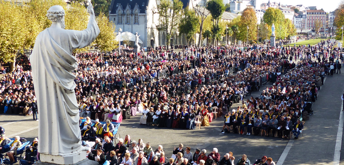 Messe à la Grotte de Massabielle avant le départ des pèlerins.