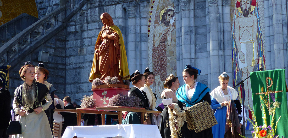 Procession mariale autour de l'esplanade, chants et prières sur le parvis de la basilique, avec animation musicale par la Chorale Sainte-Cécile de Rognonas et les tambourinaires.