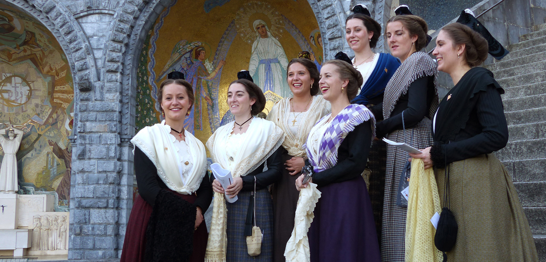 Les Salonais en car de Lourdes à Salon-de-Provence, prières et chant de la Coupo Santo.