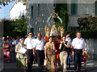 Maillane 29 août 2014 _ Tous les pèlerins ont une chance de porter une fois la statue miraculeuse, le temps d'un "Je vous salue Marie"... en quelque sorte, c'est l'illustration du Peuple de Dieu en marche vers son Sauveur, par l'intercession de Sainte Marie, notre Mère à tous (''Femme, voici ton fils'', Jean 19, 25-27).