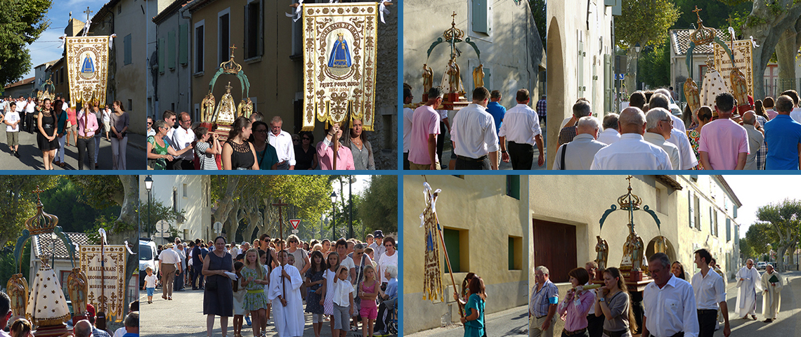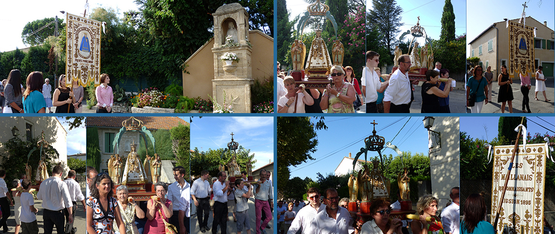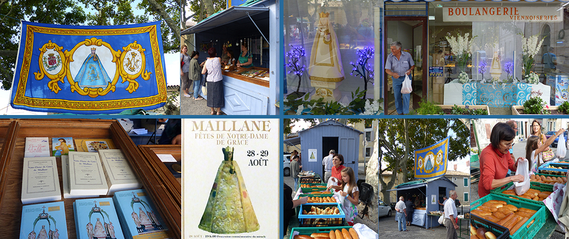 Procession des Maillanais autour du village comme le 28 août 1854, lorsque tous les malades atteints du choléra guérirent instantanément sur le passage de la statue de Notre-Dame de Grâce.
