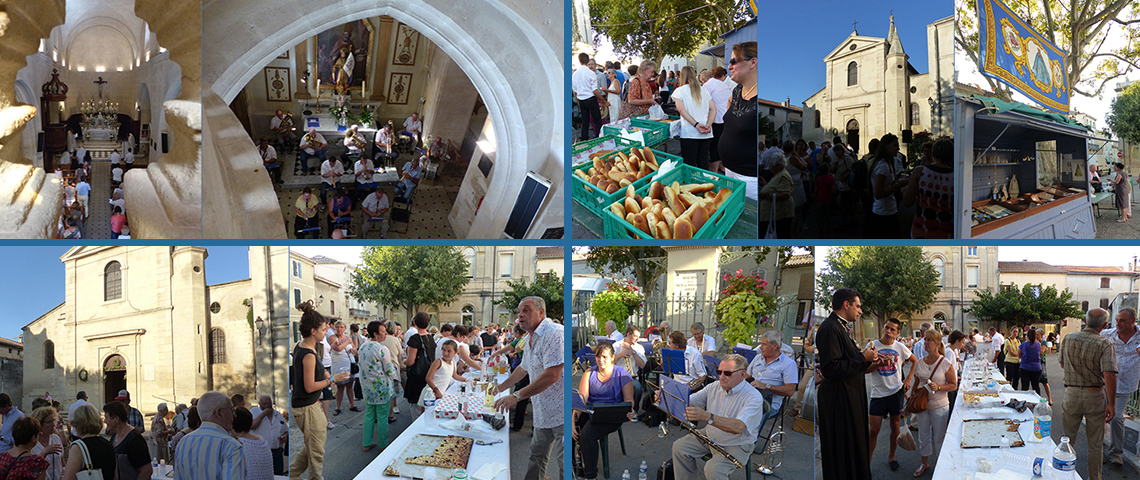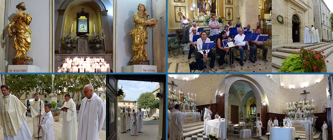 Maillane 29 août 2014 _ La Grand-Messe sera présidée par le Père Julien BRISSIER (paroisse d'Asnières sur/Seine), en présence du Père Jan Van UYTVANGE, curé des paroisses de Barbentane, Graveson, Maillane et Rognonas, du Père Emmanuel KAUFFMANN, vicaire, et de Christophe LLORCA, diacre ; animation par l'harmonie municipale ''Muso Maianenco''.