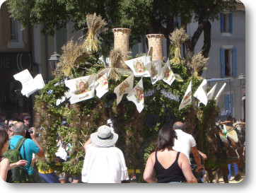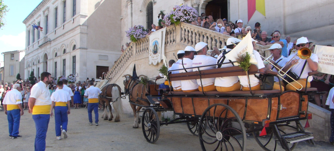 CHATEAURENARD _ Passage de la charrette de la fanfare au son des cuivres.