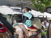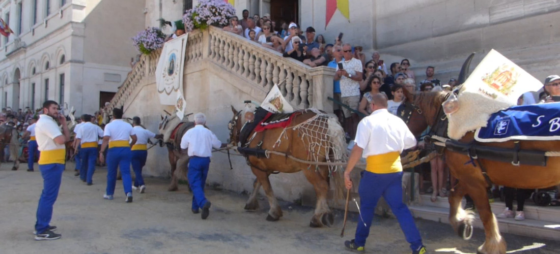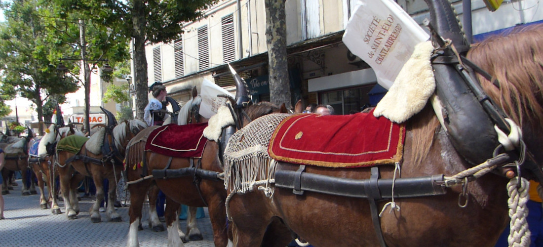 CHATEAURENARD _ Dernier passage de la charrette, les chevaux sont maintenant conduits sur la place de la Foire pour être déharnachés.