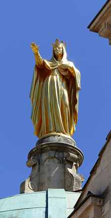 La statue de Sainte-Anne, en bronze doré, qui somme la chapelle royale, est l'oeuvre de Joseph-Elzéar Sollier, sculpteur aptésien.