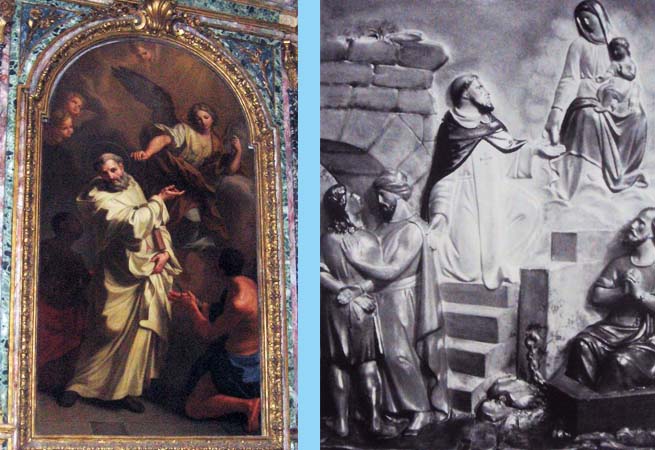 A gauche : St Jean de Matha secourant un esclave chrétien, Eglise des Trinitaires, à Rome (Photo du web)